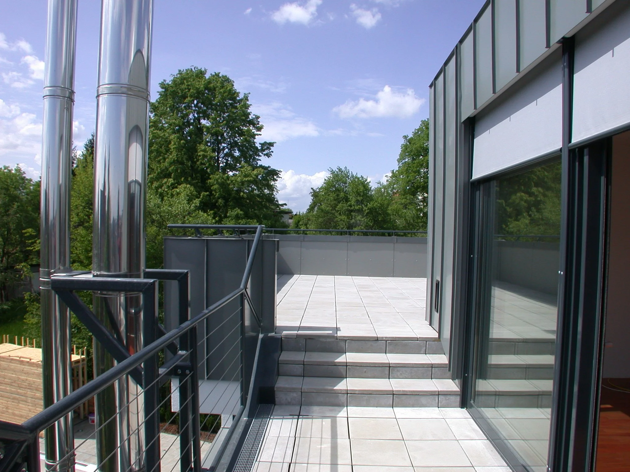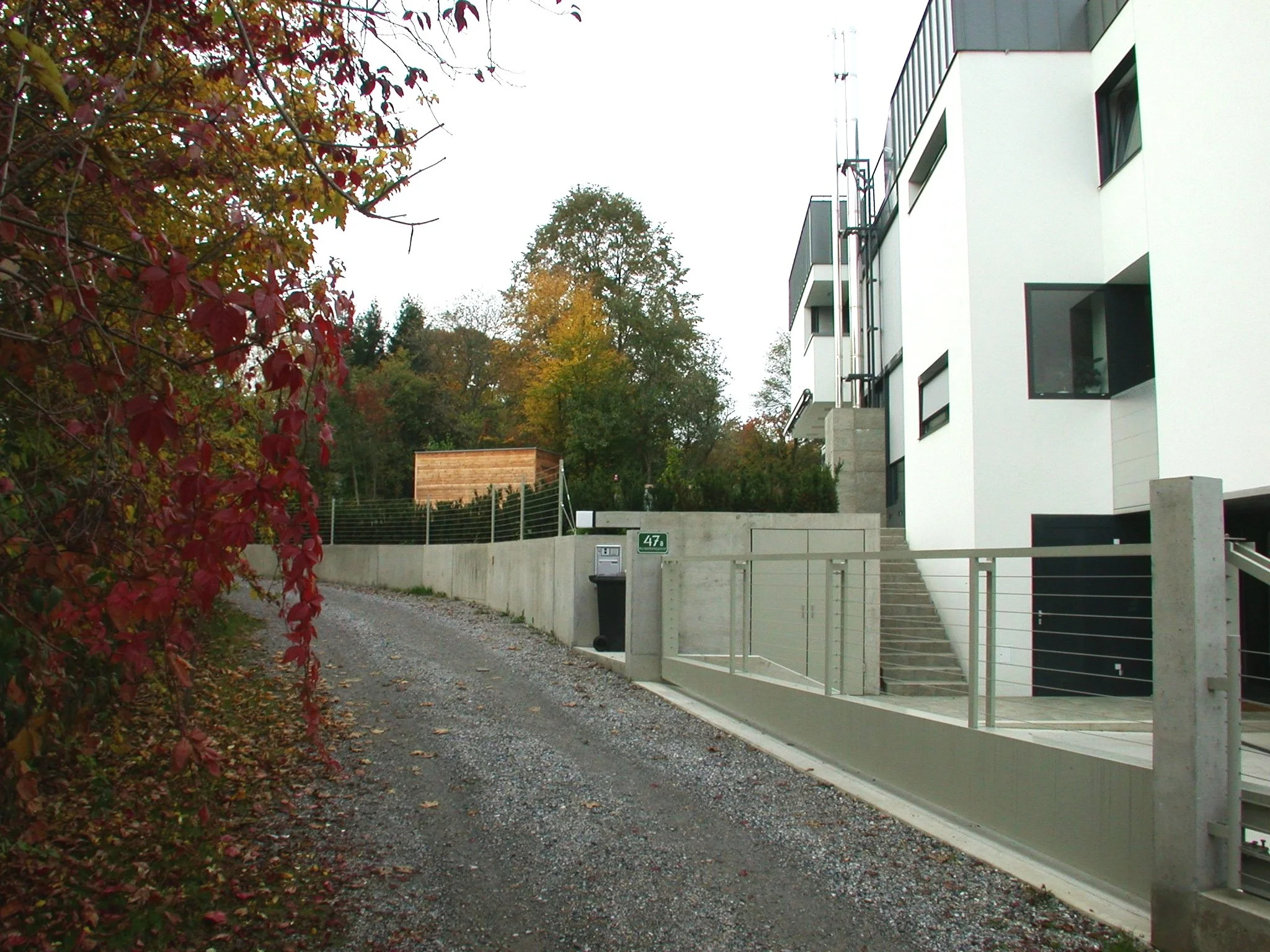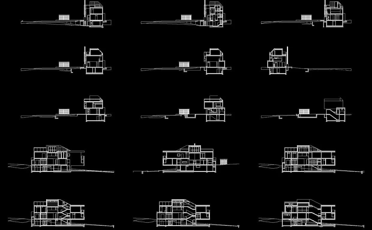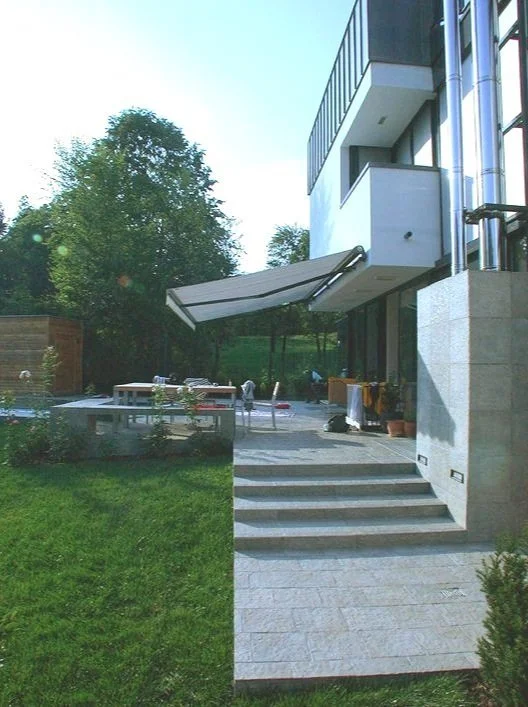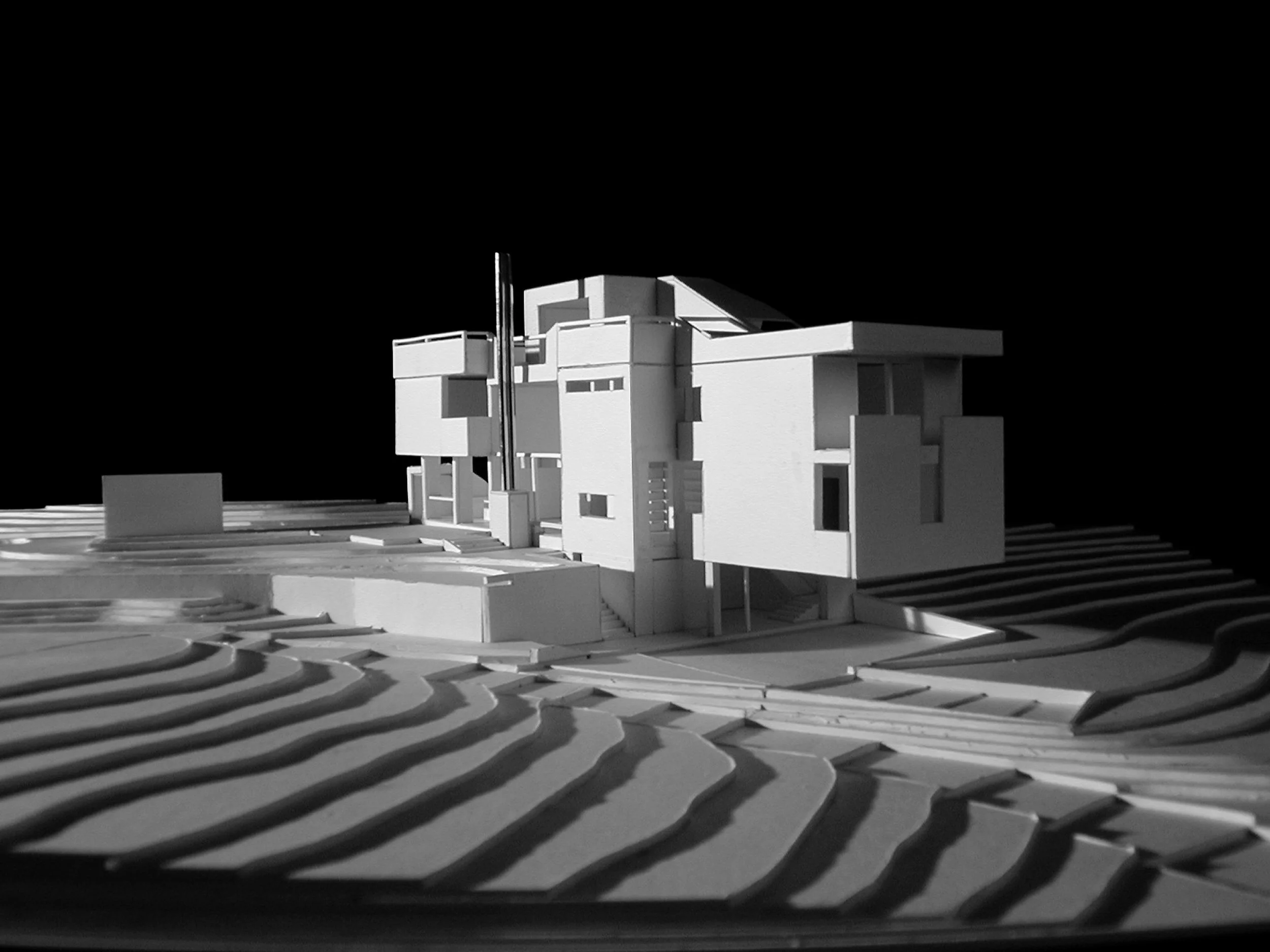 Squeezed into a small lot in a noble residential area of the city of Graz in Austria, this house for a radiologist and his family bulges and contorts itself to fulfill the demands of the program: the normal requirements of a house, plus gym, sauna, reading room, separate TV-room, rooftop office and roof terrace, swimming pool and garden hut. The building completely maximizes the zoning set back regulations in every direction, and ultimately cantilevering the building, a move that accommodates a carport. On the interior the central double height living room joins all of the spaces in the house.